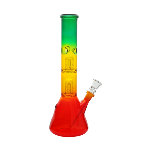 Glas Bong, Double Percolator, Rasta Color, 30cm